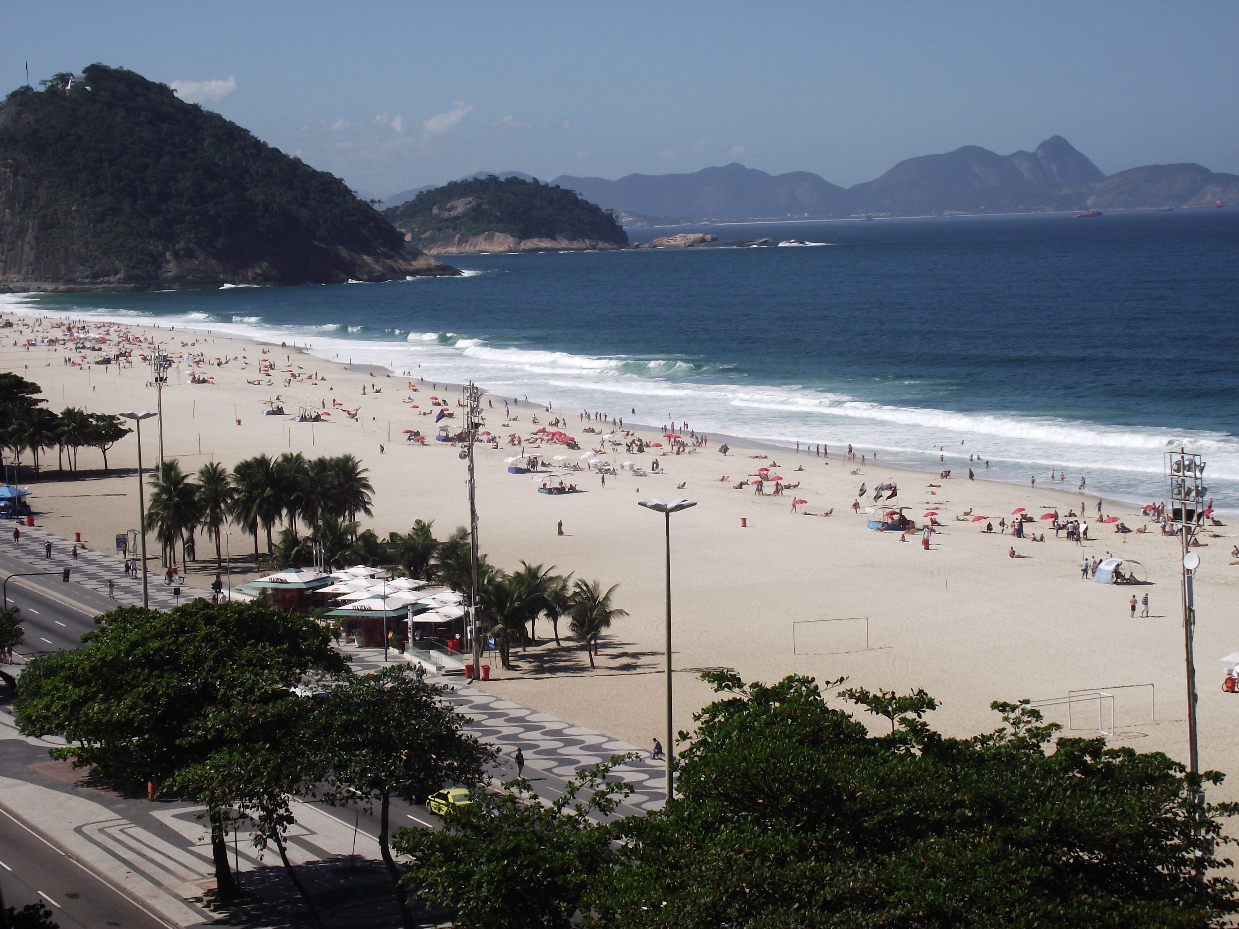 Turumuzun devamı yaklaşık 4 km. uzunluğundaki Copacabana plajıyla devam ediyor. Eğer hava güzelse ortalıkta boş yerin kalmadığı, denizin süper tangalı kızlarla dolup taştığı, kum alanın başta futbol, voleybol olmak üzere tam bir açık alan spor sahası halinde olduğunu görüyorsunuz. İnsan ister istemez bu şehirde çalışan hiç kimsenin olmadığını düşünüyor. Öyle ya plaj bu kadar kalabalık iken çalışanlar nerede ? Bu arada bir cafe’de oturup Caipirinha’nızı içerken (Mohito’ya çok benzer bir yerel kokteyl) kumun üzerinde oynanan futbolu ve de voleybolu izlerseniz bu ülkenin bu sporlarda dünyanın tepesinde neden yer aldığı sorunuza da cevap bulmuş olursunuz. Hem de kızlı erkekli birlikte oynuyorlar çoğunlukla.
