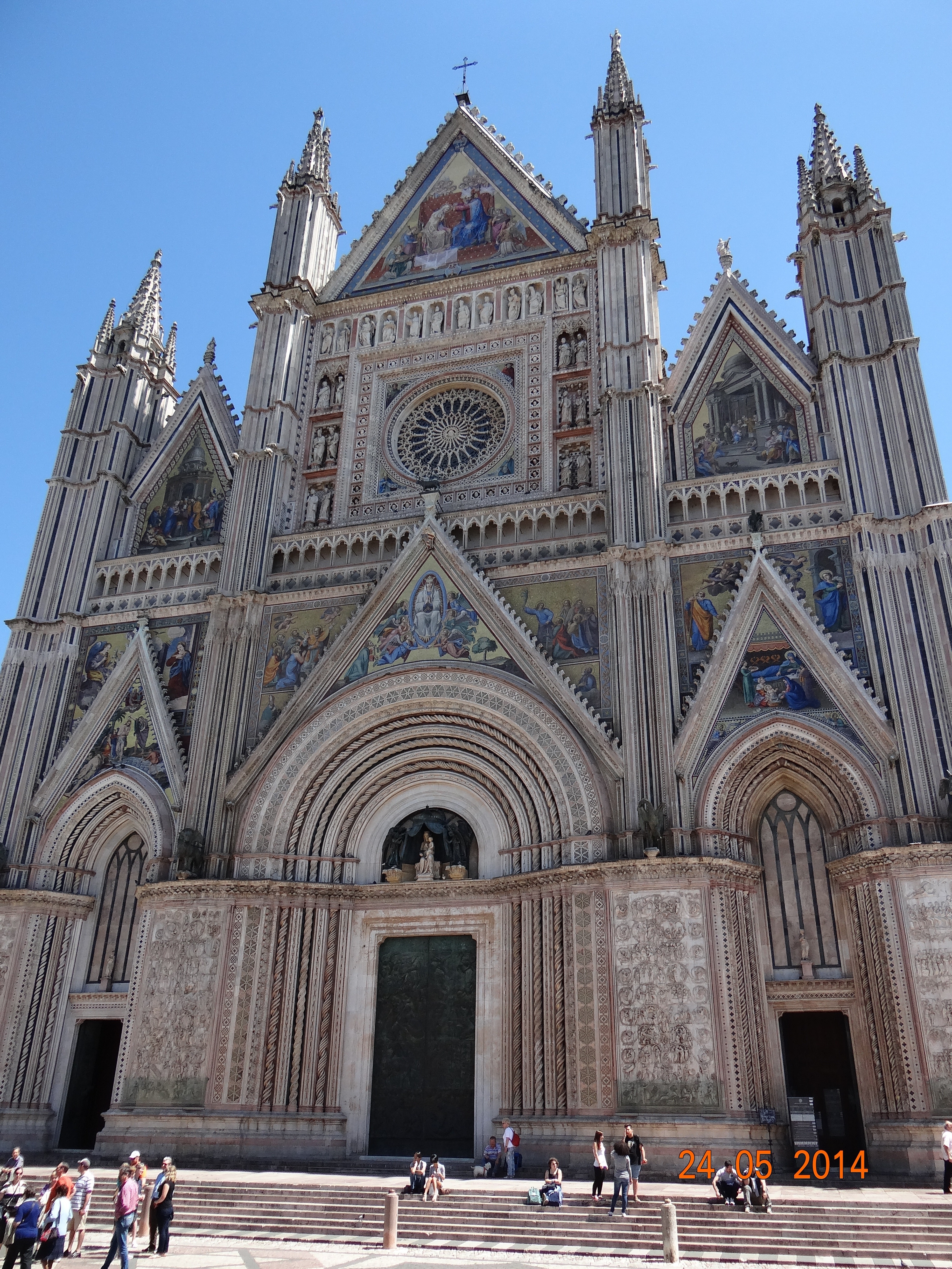 9. Yüzyıla dayanan bir tarih hazinesi burası. Öncelikle 20.000 kişilik nüfusuna karşılık milyonlarca kişinin yaşadığı şehirlerde görmediğimiz devasa Orvieto Duomo’su (Cattedrale dell’Assunta) bizi büyülüyor. Bu şehirden yaklaşık 25 yıl önce küçük bir konaklama ile geçerken o zaman da çok etkilenip, “bir gün kalmaya geleceğim buraya” diye kendime verdiğim sözü şimdi tutuyorum. O zaman da katedrali görünce gözlerime inanamamıştım.