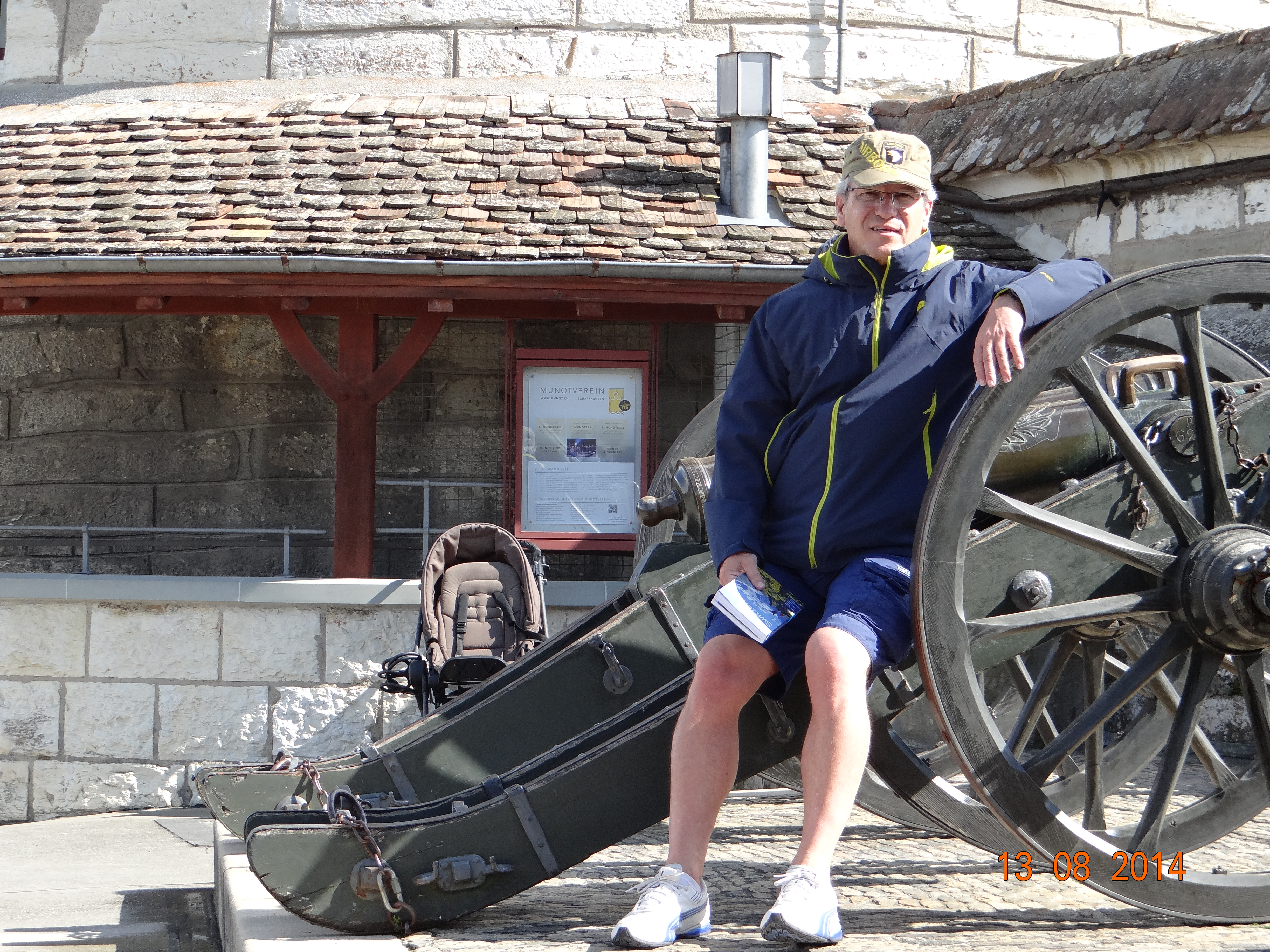 Kahve molalı keyifli yürüyüşümüz şehri tepeden seyreden Munot şatosuna tırmanmamızla sürüyor. Spiral bir merdivenle zindanlardan çatıya çıkınca kenti ve yanındaki Rhen nehrini doyasıya seyretme imkanı buluyorsunuz.