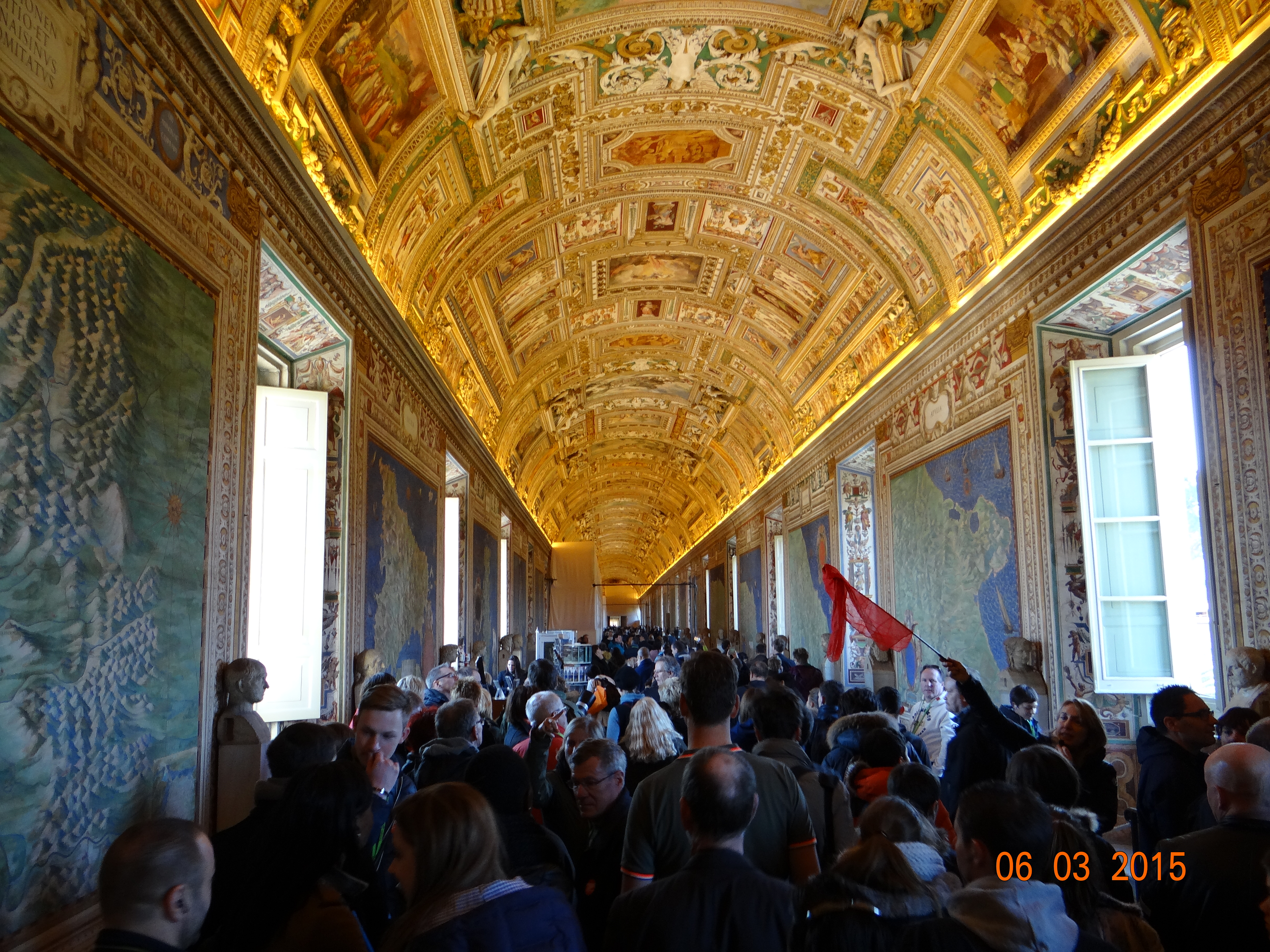 Ertesi günkü turumuz Vatikan müzesi, Sistine Şapeli ile başlayacak. Oteldeki Anastassia’nın uyarısıyla müze önündeki uzun kuyruktan kurtulmak için giriş biletlerimizi internet üzerinden alıyoruz ki doğru bir iş yaptığımız metro ile ulaştığımız müzeye gelince de ortaya çıkıyor zaten. 15. Yüzyılda yapılan şapel ve müze son derece zengin ve etkileyici.