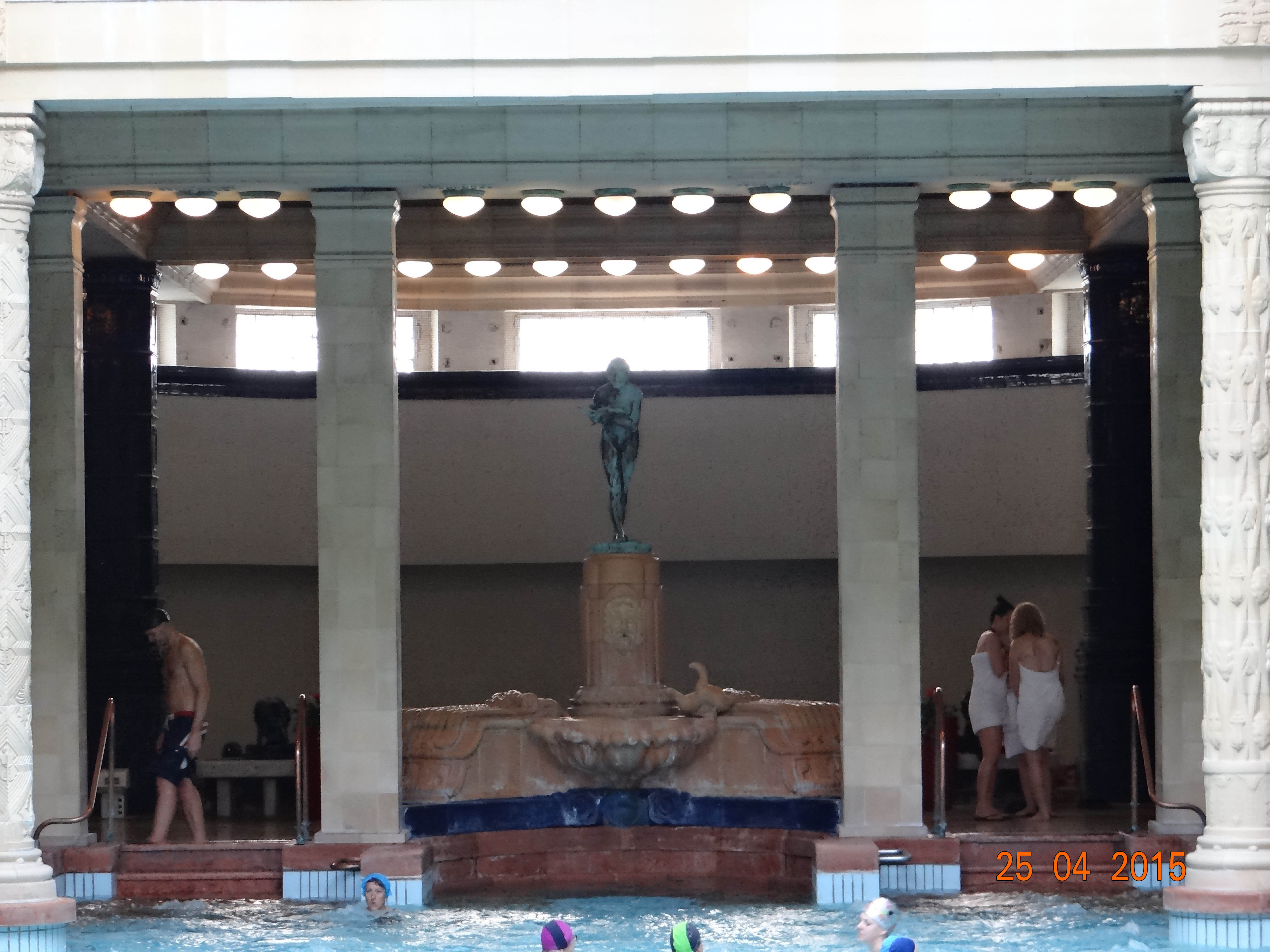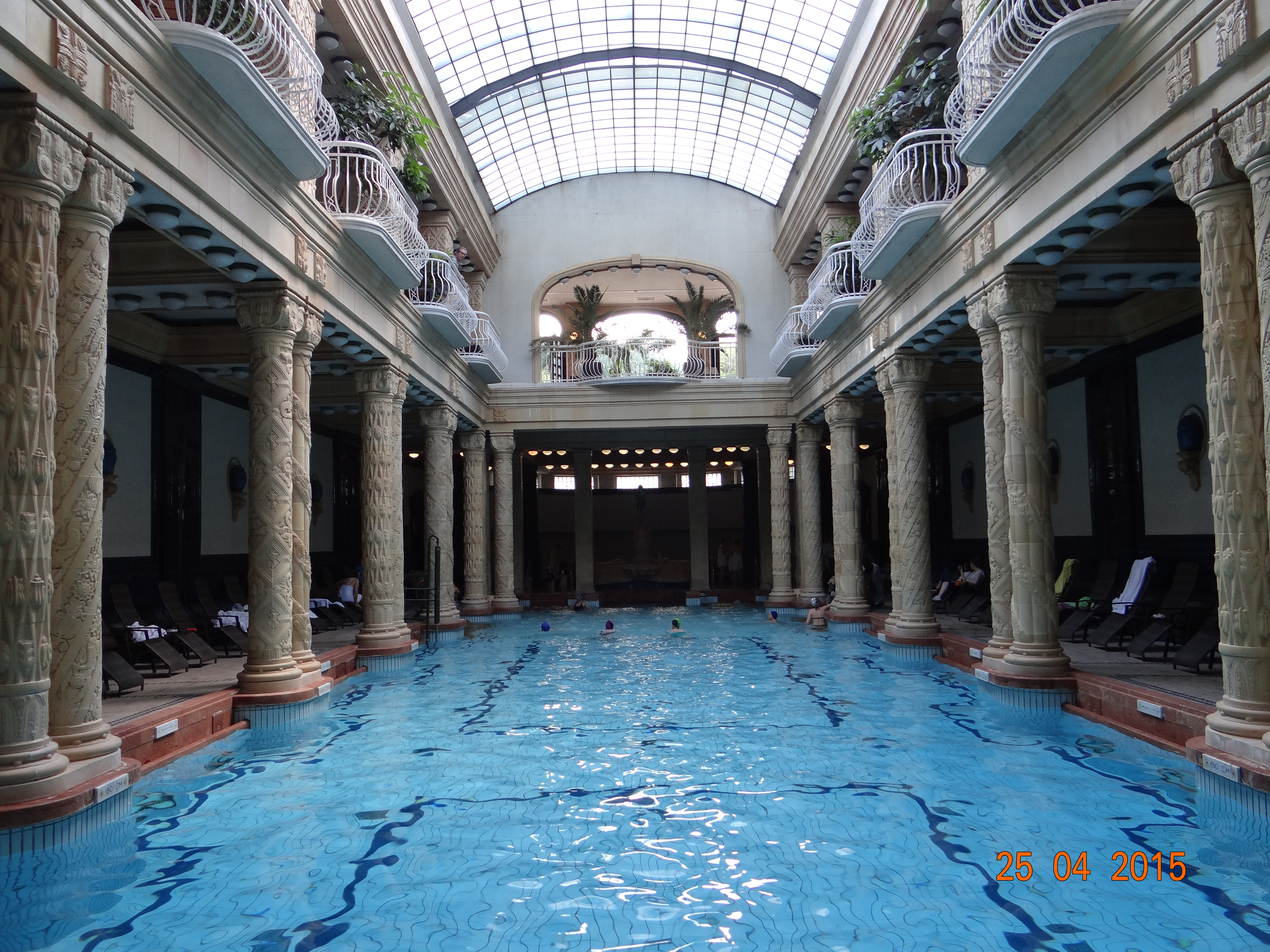 Otel tarafı lüks ve pahalı konumuyla ilgimizi çekmiyor ama iki katlı sütunlar arasında sanki orta çağda inşa edilmiş havası veren havuz gerçekten güzel. Mayolarımız yanımızdaydı ama burada başa bone takma zorunluluğu bulunduğundan girişten iki adet bone alıp soyunma odalarının yolunu tutuyoruz. Havuz her ne kadar güzel bir ambiansa sahip ise de su sıcaklığı bana göre biraz soğuk.