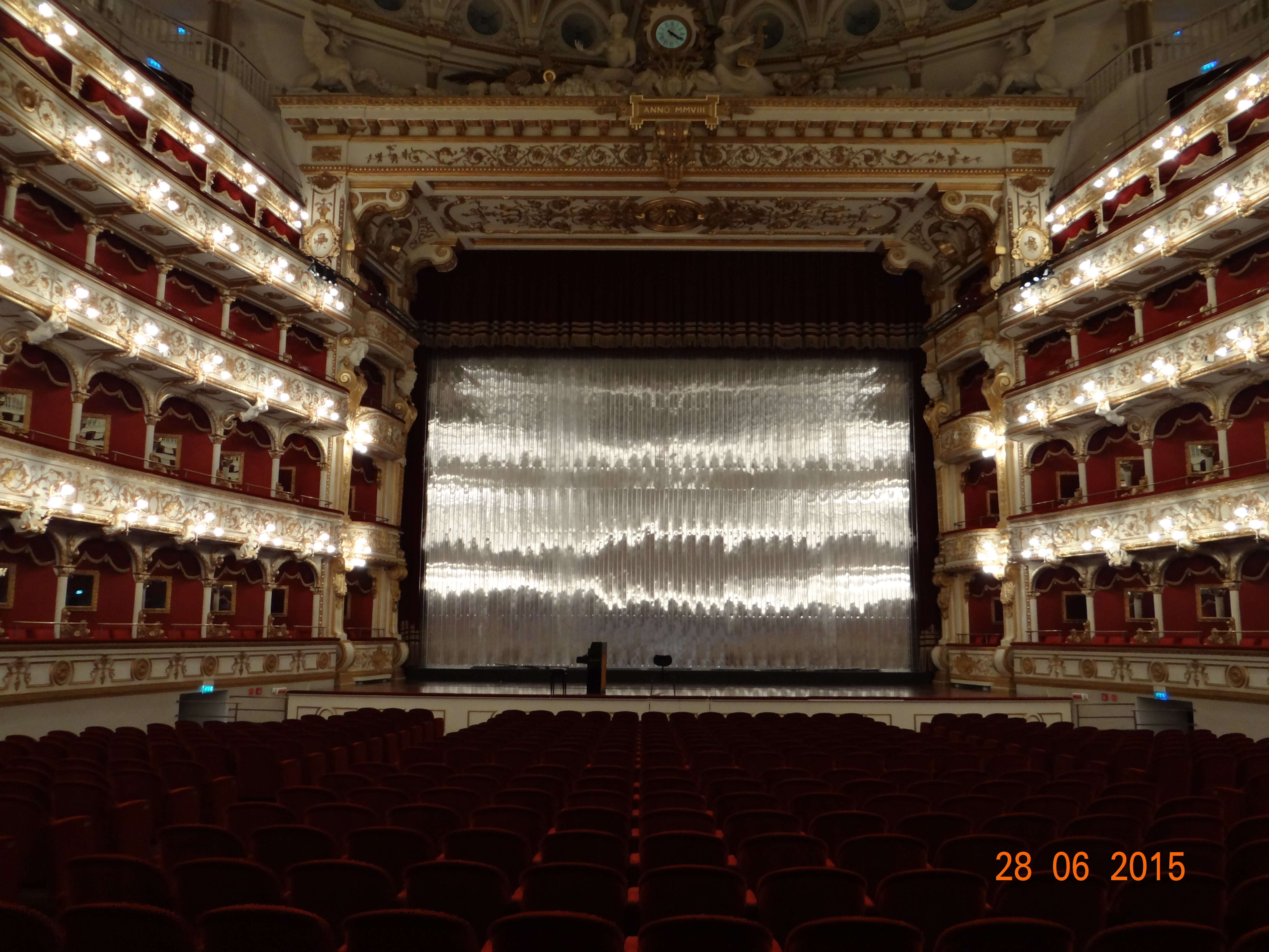 Yaz dönemi nedeniyle her yerde olduğu gibi opera ve tiyatro faaliyetleri burada da tatil halinde. İçeriye giren bir turist grubuyla biz de sızıyoruz çaktırmadan. Sempatik bir görevli bizim tiyatronun içini görmemize ve bir kaç fotoğraf çekmemize izin veriyor. Gerçekten çok etkileyici bir yapı.