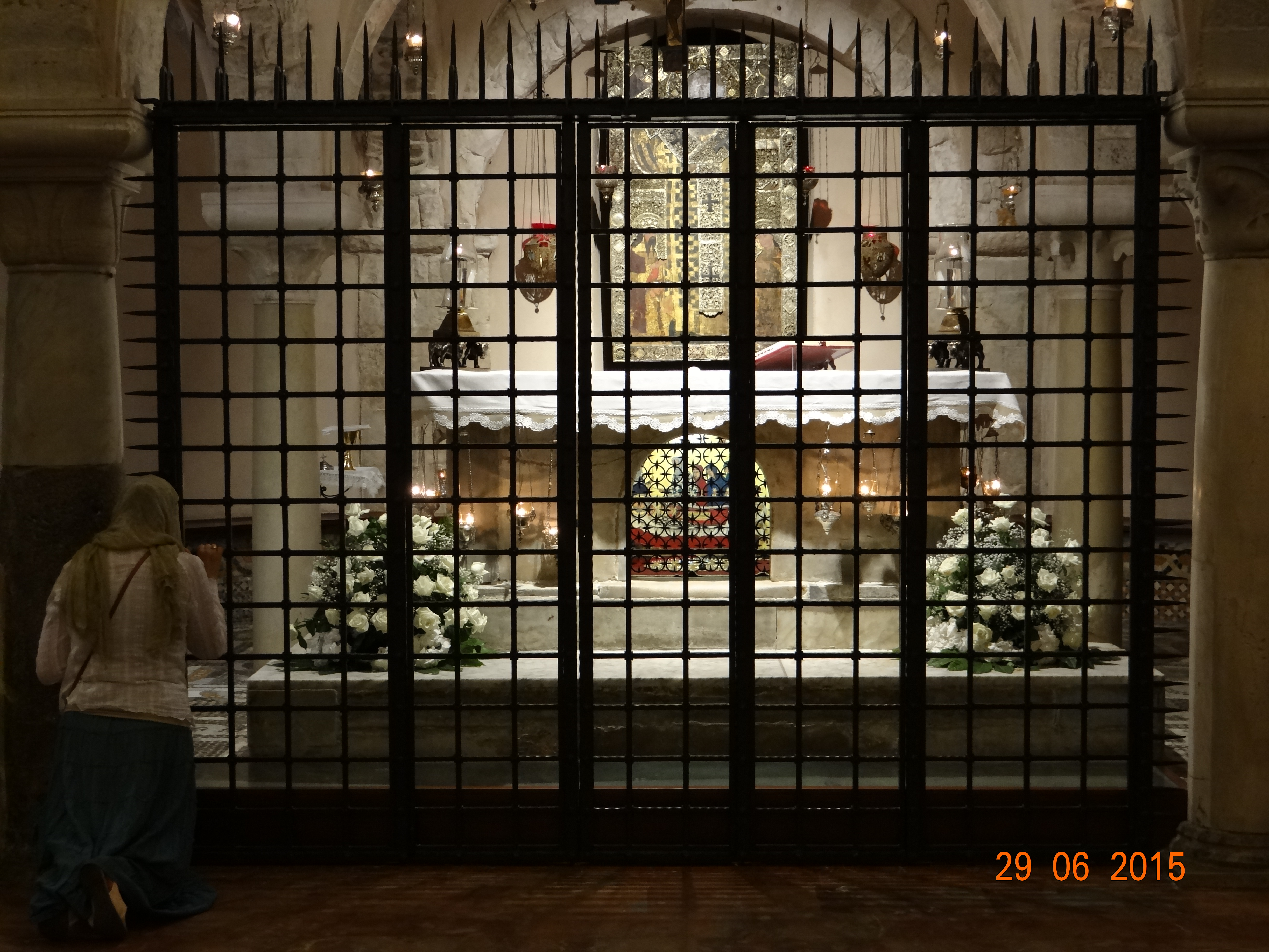 Kilisenin alt katında Noel Babanın mezarı da var. Önünde diz çöküp dua edenler, ayrı bir bölümdeki Noel baba büstünün önünü yazdıkları notlarla dolduranlarla bu kat hareketli bir gününde. St. Nicholas’ın kemiklerinin bizim Demre’den (Antalya) getirilip buraya gömüldüğünü de hatırlatalım bu arada.
