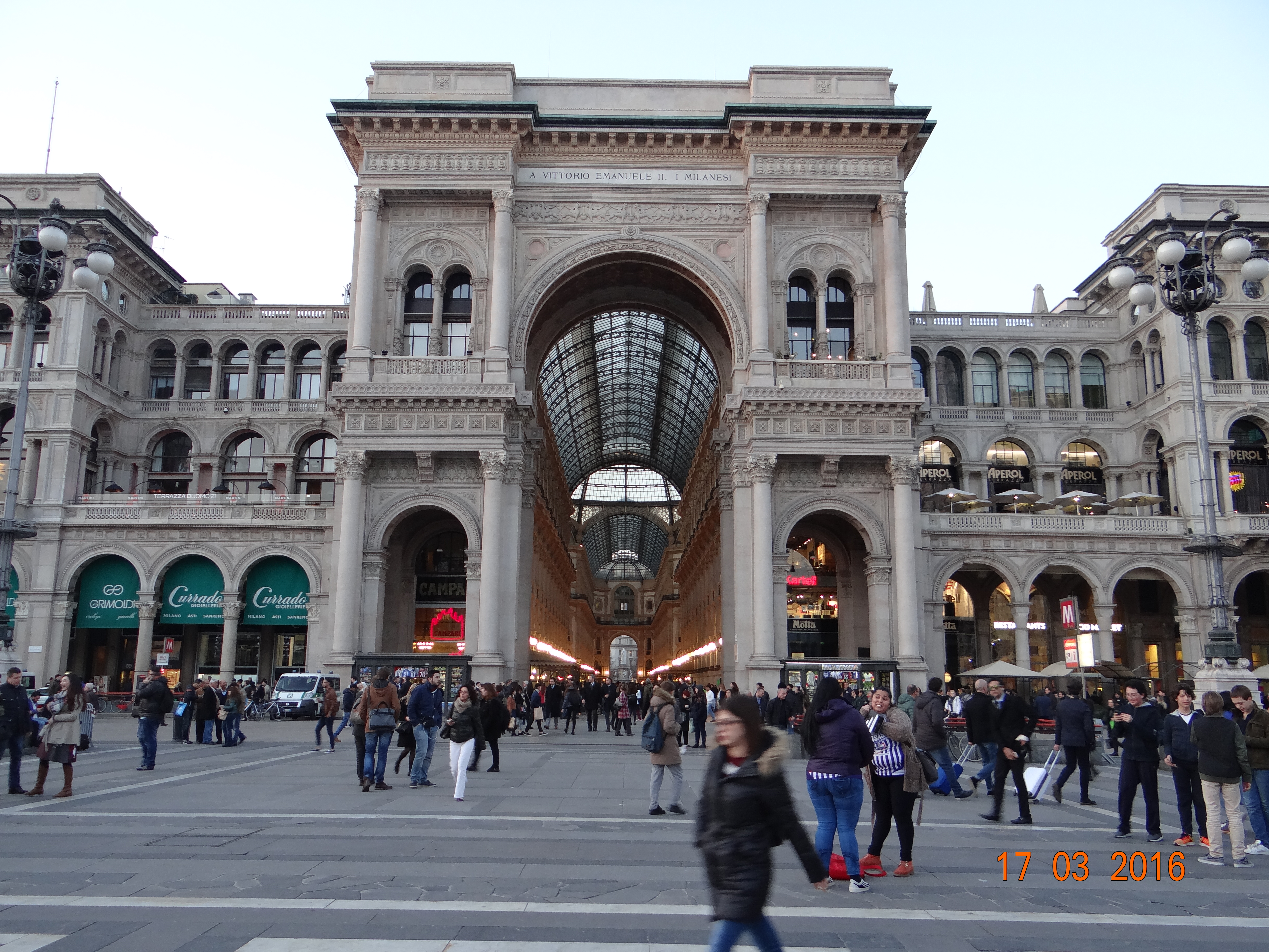 Odaya yerleştikten sonra lobiye indiğimizde ise bu gezimizde yaşayacağımız ilk ve tek tatsız sürprizle tanışıyoruz. Resepsiyon bize ertesi gün trenlerle işimiz olup olmadığını soruyor. Tabii ki var 😦 Sorun şu ki, İtalya’da zaman zaman kendini gösteren grev ve iş yavaşlatma gibi eylemlerden birisinin tam üstüne denk gelmiş durumdayız. Yarın tüm ülke genelinde trenlerin çalışmayacağı bilgisini alınca koşuyoruz doğruca istasyona. Gezi öncesi tren İtalia’nın sitesinden tüm biletlerimizi almıştık ama bakalım şimdi bizi neler bekliyor ? İstasyon anlaşılır nedenlerle hayli kalabalık. Gireceğimiz kuyruk konusunda bir miktar sıkıntı yaşadıktan ve tek günlük bir şehir gezisi için önemli sayılacak bir zamanı kaybettikten sonra yarınki tren biletimizi değiştirmiş olarak ayrılıyoruz istasyondan. Aslında şu an için tek elimizde olan şey Milano’dan Levanto’ya kadar olan yeni tren biletleri. Levanto Manarola arası hakkında kimsenin bilgisi yok. Çünkü Trenitalia’nın sitesi yerel küçük bağlantıları görmüyormuş. Böylece insani bir saatte binmemiz gereken trenimizin saatini sabahın kör karanlığına değiştirmiş bir şekilde kendimizi atıyoruz dışarıya. İstasyondaki metro aracılığı ile şehrin kalbine ulaşıyoruz. Her İtalyan şehrinde var olan duomo’ların oldukça ihtişamlısı var Milano’da. Bir dönem İtalya’dan ayrılma talebiyle gündeme gelen Lombardiya eyaletinin başkenti olan şehir 1.500.000 nüfusu 9 ayrı bölgesiyle ülkenin önemli sanayi ve turizm merkezlerinden birisi. Leonardo’nun da elini değdirdiği İtalyan gotik mimarisinin en güzel örneklerinden birisi olan Duomo’nun 1386 da temeli atılmış ise de 1905’te tamamlanmış olması oldukça ilginç. Kaçınılmaz olarak Duomo önünde fotoğraf çekme, çektirme faslından sonra meydanın hemen yanındaki çarpıcı Galleria Vittorio Emanuelle II ‘ye dalıyoruz.
