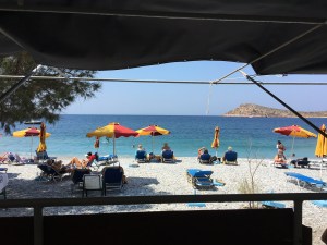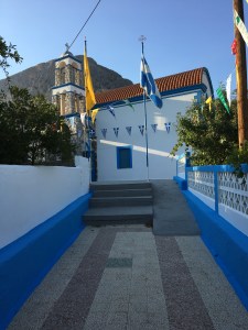 Adadaki son günümüzü karşı komşu Telendos adasına ayırıyoruz. Myrties limanından karşı kıyıya sürekli ve düzenli motor seferleri var. Kişi başı 1,5 .-€ ücretle 10 dakikada geçiyorsunuz Telendos’a. Bizim Kouzina’yı bir de denizden görüntüleme şansımız da oluyor böylece.