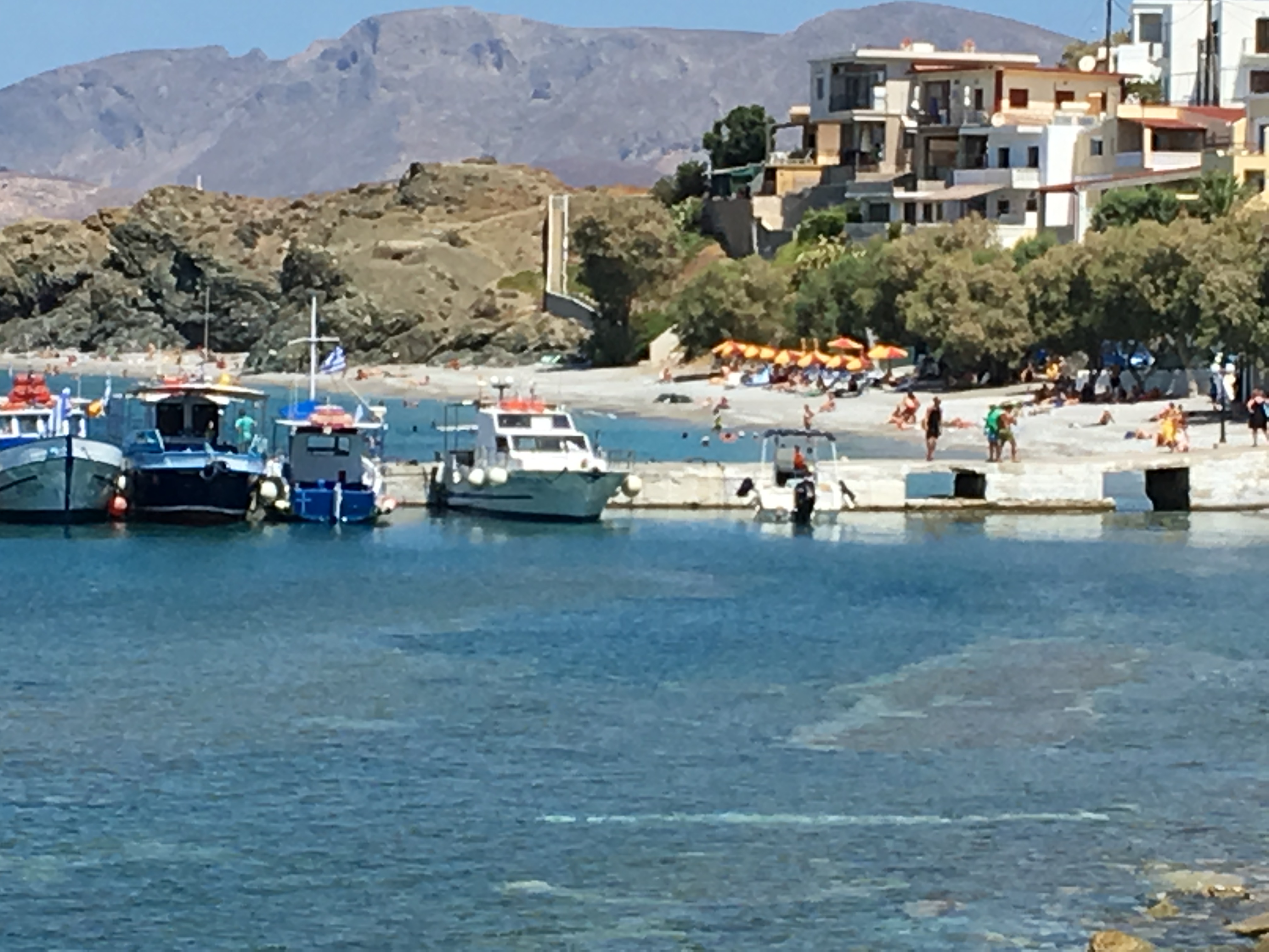 İş böyle olunca ya otelin sol tarafına bir 20 dakika yürüyüp Melitsaxsa Beach’e ulaşmanız gerekiyor ya da sağ taraftaki küçük limanın yanındaki halk plajına.