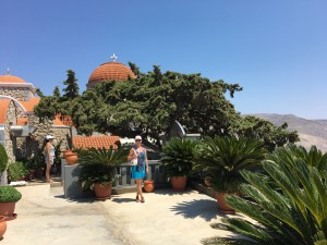 Ertesi gün adanın en yüksek tepesinde yer alan Agios Savvas Manastırına giderek başladık güne. Adanın koruyucusu Aziz Savvas adına 1952 yılında inşa edilmiş olan kompleksin geniş bahçesinin içinde manastır, kilise, çan kulesi, kütüphane var.